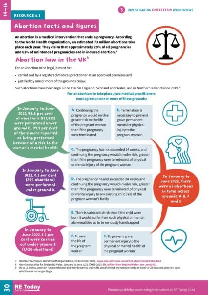 This resource presents facts and figures related to abortion, exploring its ethical implications from a religious perspective. It discusses varying religious teachings and beliefs about abortion, aiming to inform students about the complex moral landscape surrounding this issue and encourages aging thoughtful discussion and debate.