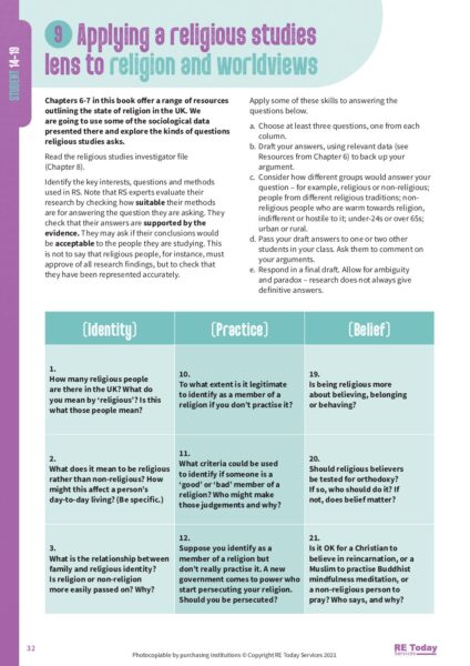 Applying a religious studies lens to religion and worldviews (pp. 32-33)