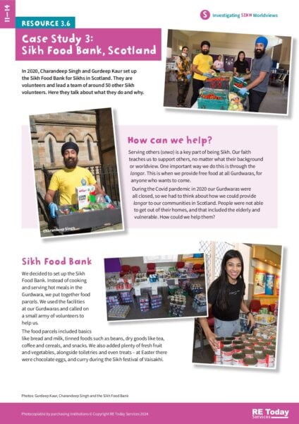 This case study examines the role of a Sikh food bank in addressing community needs and promoting social justice. It illustrates the practical application of Sikh teachings on service and compassion, providing educators with a real-world example of faith in action.