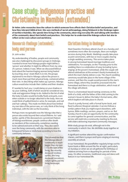 Combining Christian and indigenous practice in Namibia (extension)