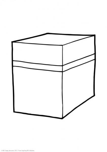 This outline of the Ka’aba provides a simplified image of the sacred structure, central to Islamic pilgrimage (Hajj) in Mecca. The visual serves as an educational tool to introduce students to the importance of the Ka’aba in Islam, representing unity and devotion among Muslims worldwide. This resource supports learning about the cultural and religious significance of the Ka’aba as the direction of prayer and a key symbol in Islamic worship.