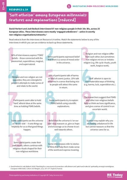 This document presents interviews exploring “soft atheism” among European millennials, capturing their perspectives on spirituality and belief. It examines how young adults define their non-religious identities and engage with spiritual concepts, highlighting the nuances of modern atheism. By engaging with this material, students can reflect on contemporary beliefs and the diversity of worldviews in today ís society. This resource is valuable for fostering discussions about faith and non-faith in religious education.