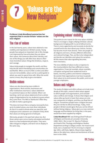“Values Are the New Religion” is an educational resource from the “Challenging Knowledge in RE” series, designed for school students. This thought-provoking material explores the evolving landscape of religion and spirituality, examining how contemporary values have, for many people, become a guiding force akin to traditional religious beliefs. Through this resource, students engage with key questions around the concept of secular morality, how values shape identity, and the relationship between culture and spirituality. It provides a platform for rich classroom discussions on how values influence personal and societal choices, fostering critical thinking and reflection. This resource is especially relevant for helping students understand the interplay between religious beliefs and secular ideologies in modern society. It encourages learners to consider their own values, compare them with traditional religious principles, and reflect on the broader implications of values-based living. By using this RE resource, teachers can guide students to explore the reasons behind changing attitudes towards religion and how this reflects broader cultural shifts. With its focus on contemporary issues, “Values Are the New Religion” is an engaging way to connect students to the real-world relevance of Religious Education, enhancing their understanding of spirituality in a modern context.