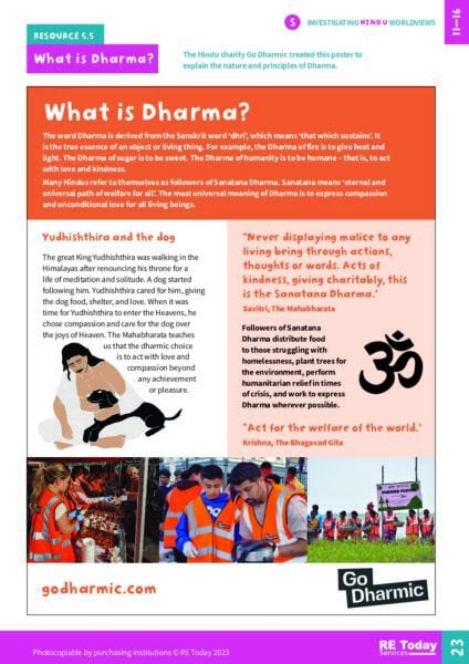 This resource explores the concept of Dharma in Hinduism, defining its meaning and significance in guiding ethical behaviour and responsibilities. It discusses how Dharma is understood in various contexts, including personal, social, and cosmic duties, providing educators with a framework for discussing moral philosophy in Hindu thought.